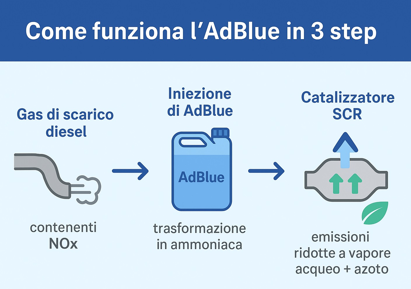 ❌ “L’AdBlue aumenta la potenza del motore”: non influisce sulle prestazioni, serve solo a ridurre le emissioni.